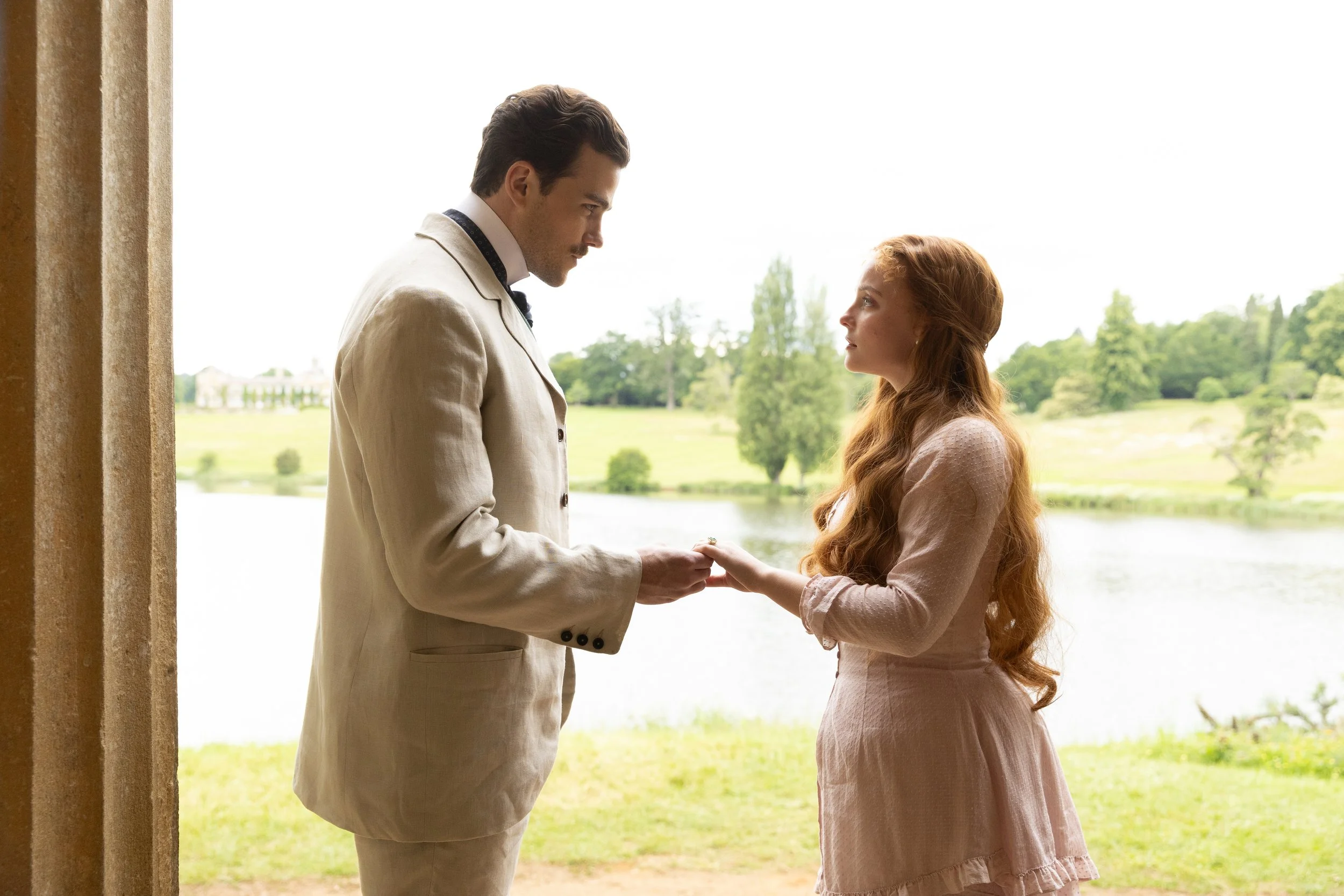 Moyer features as Ann’s eldest son, Jolyon Senior, head of the family stockbroking firm Forsyte & Co. Danny Griffin (Fate: The Winx Saga) plays his bohemian son Jo, while Tuppence Middleton (Downton Abbey: A New Era) is his status-driven wife Frances. Tomlinson plays Louisa Byrne, a Soho dressmaker and Jo’s first love.